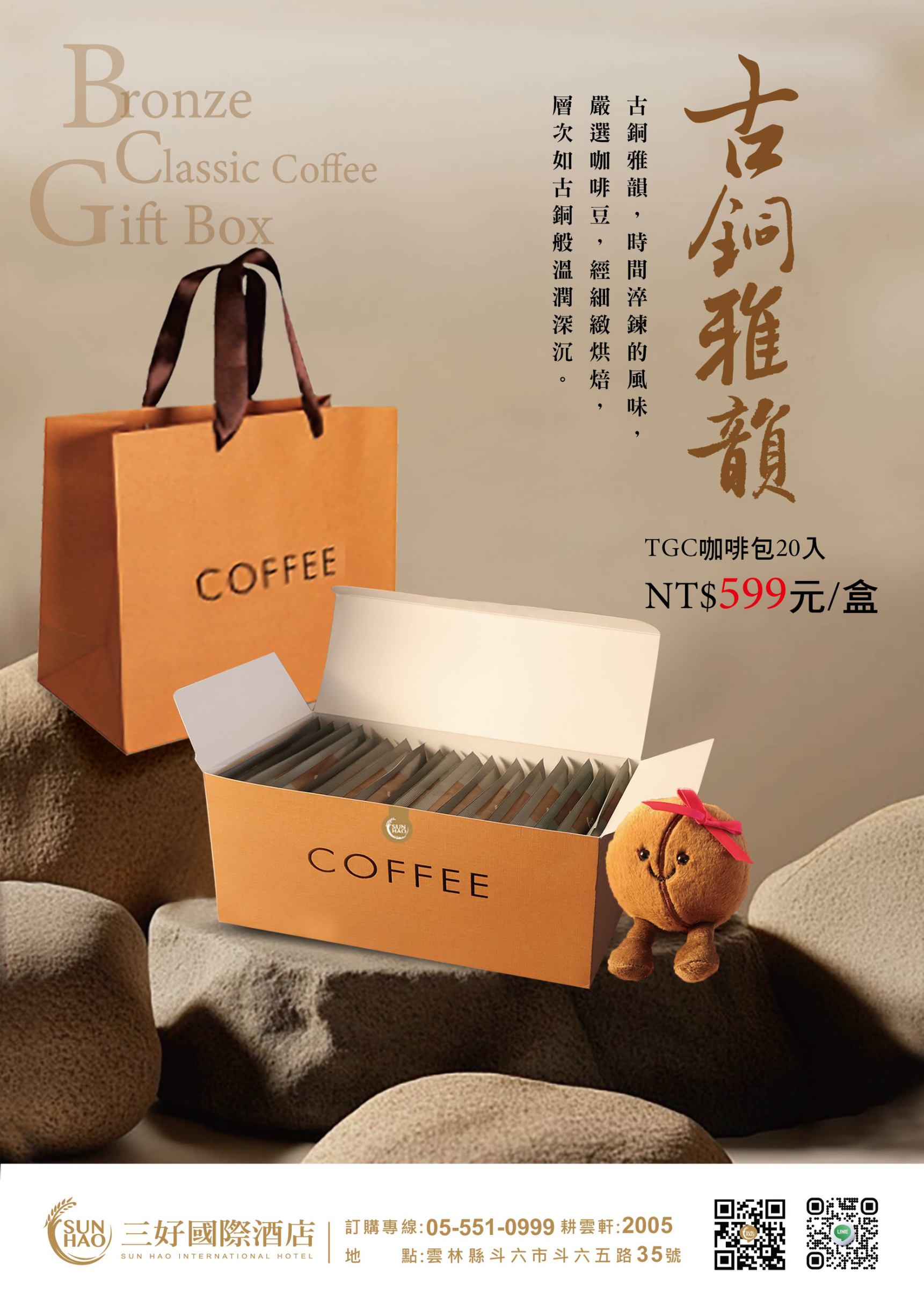 🟤 三好・古銅雅韻咖啡禮盒 20包入,日常補給剛剛好 香氣穩重、價格輕鬆 👉 $599 🧡 三好・橙韻典藏咖啡禮盒 6包咖啡+馬克杯+咖啡豆娃娃 一盒直接收服你的心💘 👉 $880 🐻 咖啡豆娃娃陪你喝咖啡 讓每個早晨都多一點溫度 不管是送禮還是寵自己 這一盒,都剛剛好☕✨ 📞 訂購專線|05-5510999#2005