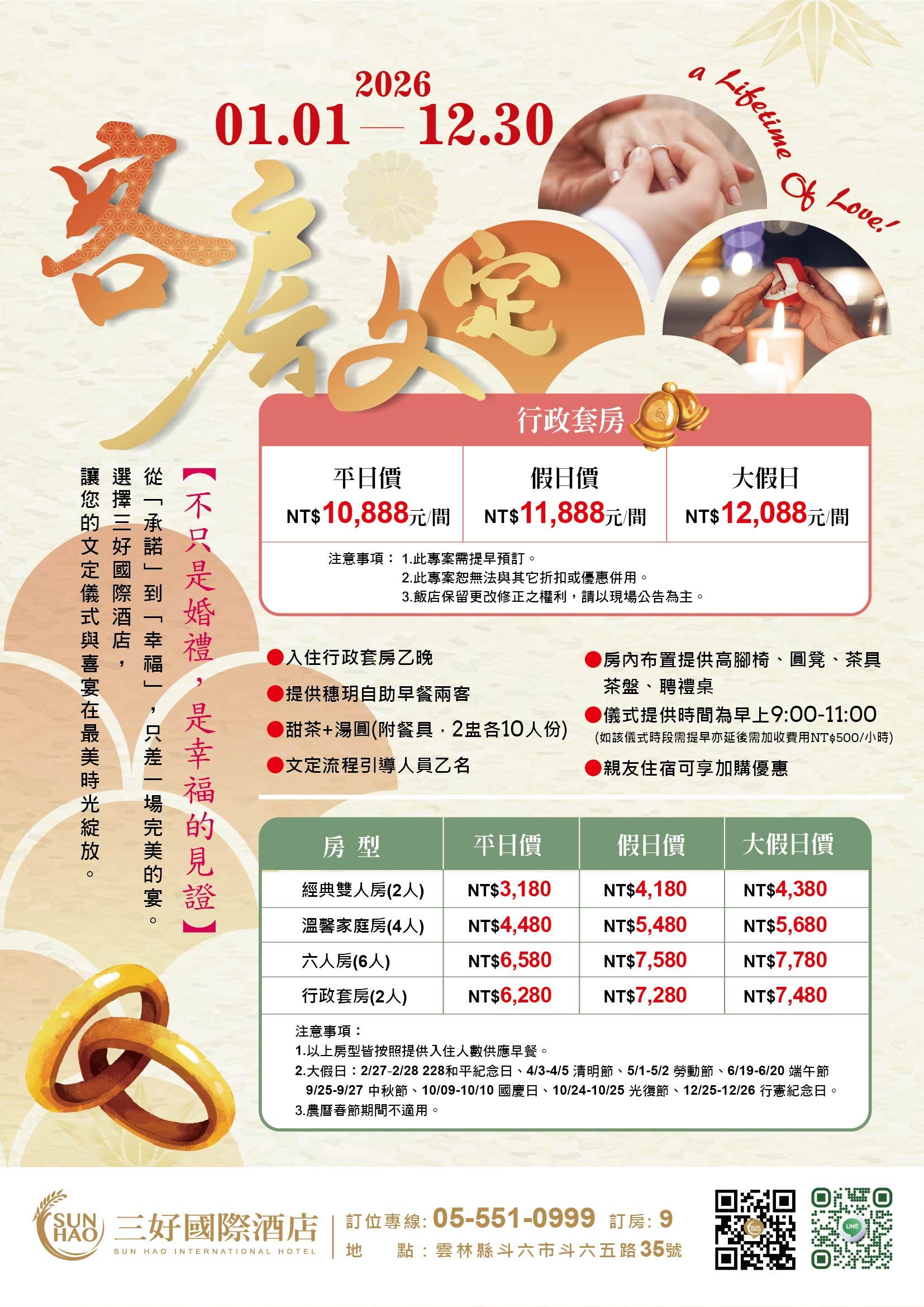 於寬敞典雅的行政套房中,安排溫馨莊重的文定儀式,